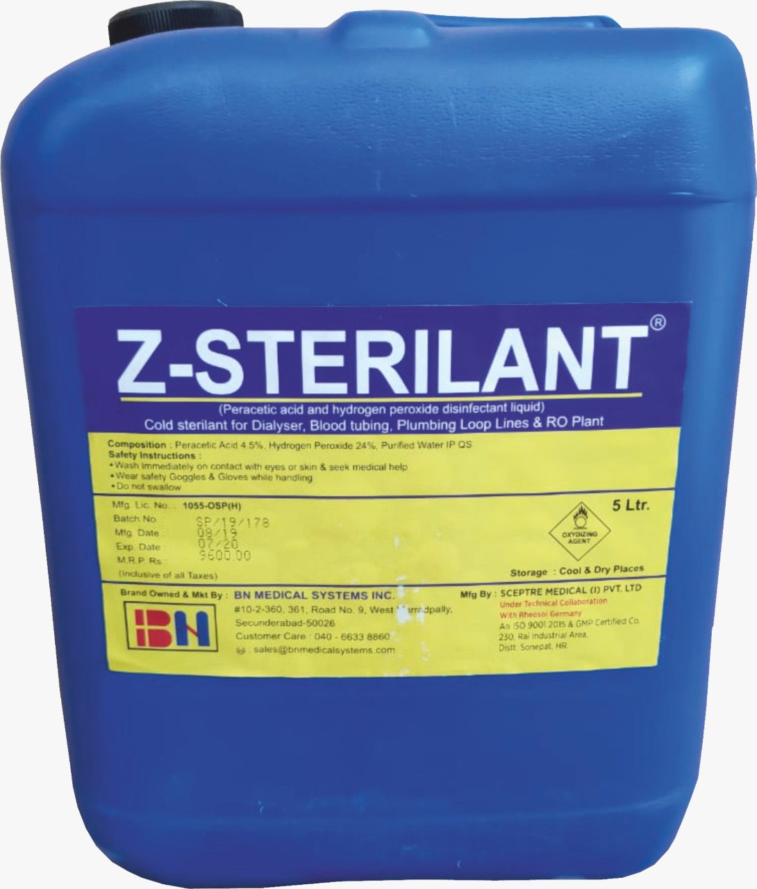 Storage : Z-Sterilant must be stored in original container and must be kept it an upright position, keep cool (30'c) dark and ventilated place. Do not tamper with vent cap.
